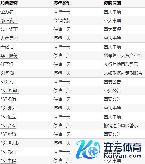 A股停牌教唆:18股当天停牌开云体育A股停牌教唆:18股当天停牌