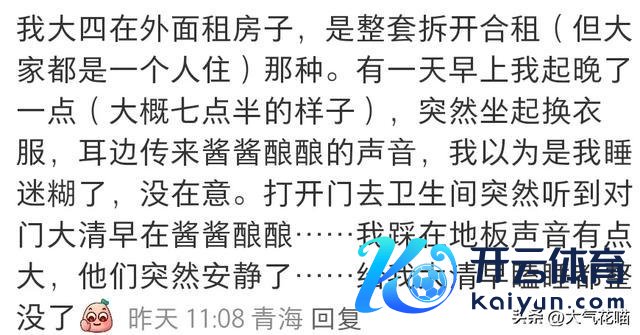 想必许多东说念主住的屋子隔音齐不怎么好,很容易听到门外八成近邻的动静,而有的东说念主住的屋子,可能从来听不到动静,其实,可能并不是屋子的隔音好,仅仅你的邻居相比称心!全部来看下网友们的共享吧[灵光一闪]倏得不唱了,近邻齐不习尚了哈哈哈