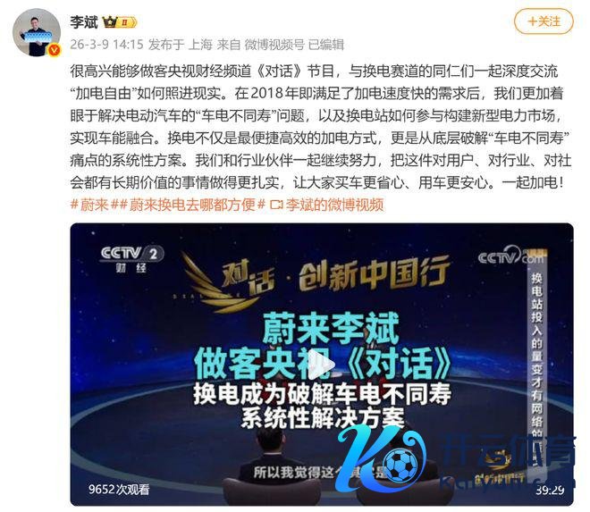 而就在昨天深夜,蔚来首创东谈主、董事长、CEO 李斌作客央视财经频谈《对话》节目上线,在节目中,李斌再次谨防推崇了蔚来的换电理念。