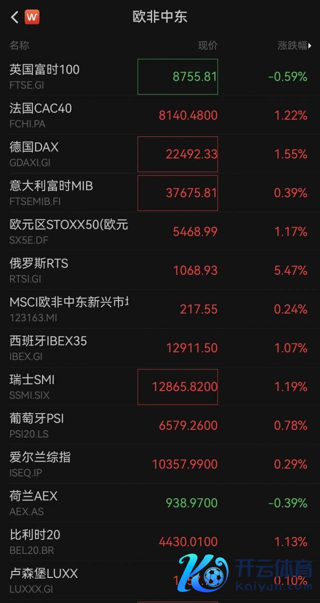 欧洲商场方面,多国股市均上升,其中,德国 DAX 指数、法国 CAC40 指数涨超 1%。