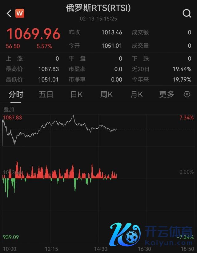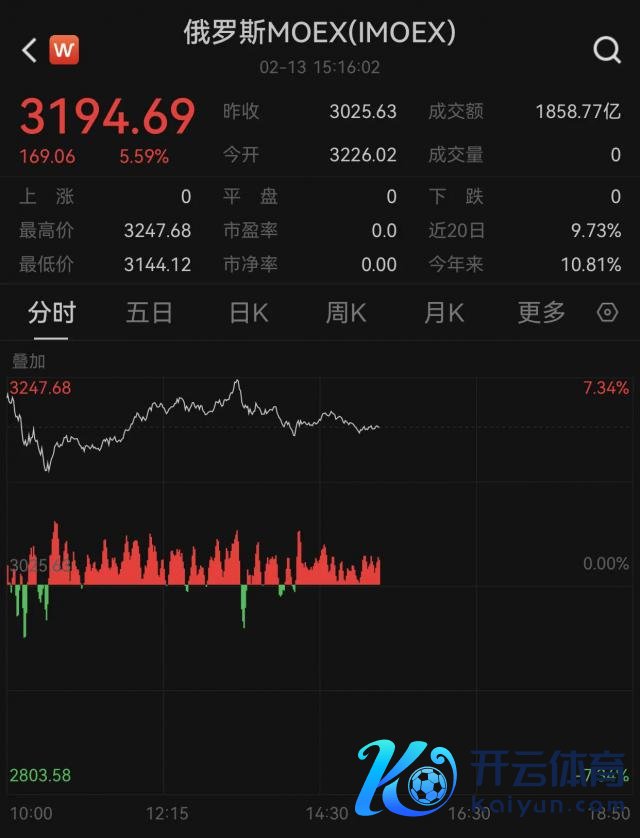当地技巧 2 月 13 日,俄罗斯股市大涨,端正发稿云开体育, 俄罗斯 RTS 指数、俄罗斯 MOEX 指数均涨超 5%。
