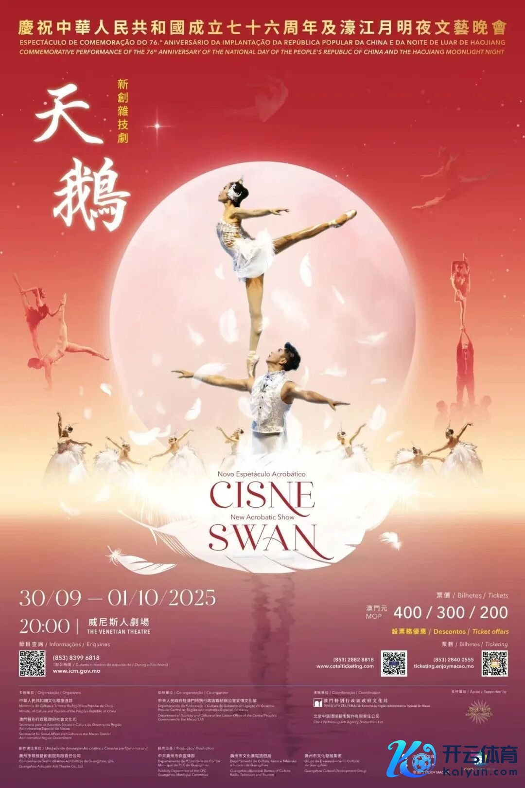 在广州、茂名、深圳及澳门四地,广州市杂身手术剧院携四部极品剧目,造成区域联动效应。杂技剧《天鹅》于9月30日至10月1日在澳门威尼斯东说念主戏院献艺,动作澳门“庆祝中华东说念主民共和国成立七十六周年及濠江月明夜文艺晚会”中枢剧目精彩上演。10月3日至4日晚,杂技舞剧《化·蝶》将登陆广州白云国外会议中心,并于10月8日不时亮相茂名电白体育馆,以现代艺术话语重构“梁祝”经典,传递东方好意思学境界。