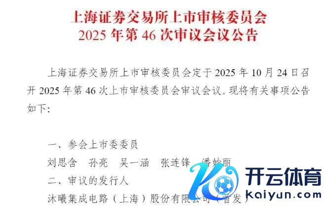 上交所上市审核委员会10月17日公告,定于2025年10月24日召开2025年第46次上市审核委员会审议会议,审议沐曦集成电路(上海)股份有限公司(下称“沐曦集成电路”)首发事项。